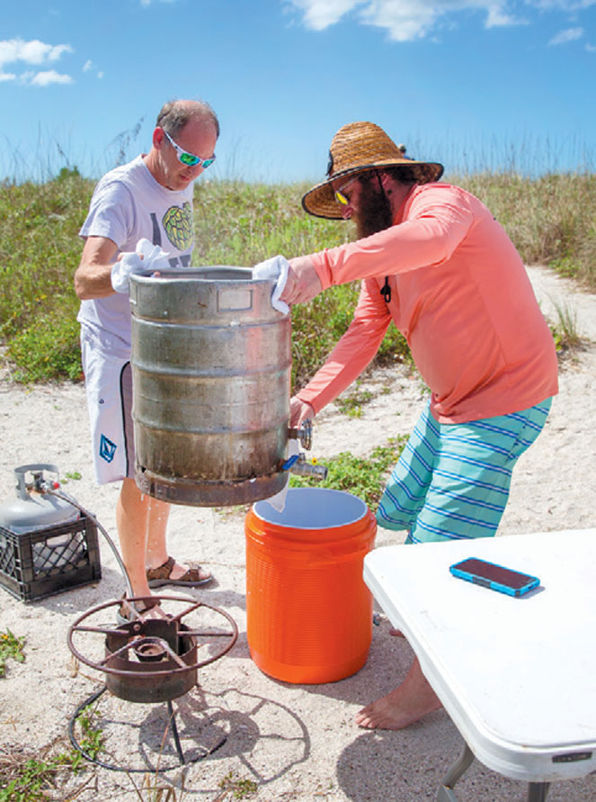 “Traditional brewing typically takes place somewhere where almost everything is controlled,” said Mick. “There are a lot of variables to consider at the beach.” This was true and we were up for the challenge. First we picked out the perfect spot, and somewhere between the Gulf and the mangroves we put together a makeshift brewery.