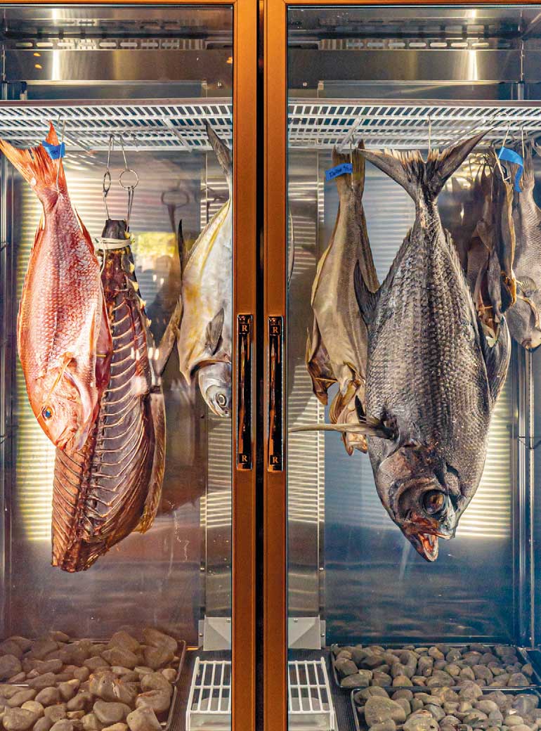 Chef Drew Adams has an intensity that can be intimidating until you recognize it for what is: passion, focus, and depth. These three qualities are expressed in every dish that leaves the kitchen at Meliora. If you have yet to visit Meliora I have one important tip: Take the tour. If you have been to Meliora and you’ve only had a drink at the bar or eaten at one of the tables in the main dining room, then hurry back and take the tour. The back room at Meliora houses some truly enchanting surprises such as the open kitchen, the Chef’s Table, and the the dry-aged fish fridge. The latter is something that I’ve never seen before but it’s a sight to behold and it’s also the wave of the future (albeit a centuries-old Japanese technique). Dry-aging fish keeps it fresher longer and it also concentrates the flavor. Book a seat at the Chef’s Table and you’re in for a treat. The kitchen team functions so compatibly that it’s a joy to behold, as are the dishes coming out of the kitchen—each one more photogenic than the last. The showstopper, on a menu of standouts, has to be the Raw Scallop. Chef Drew is constantly refining this dish but that’s a case of improving on perfection. The dish is presented in a kind of fishbowl with delicate raw scallops nestled in the bottom with fresh herbs and edible flowers. The dish is finished tableside with a warm scallop cream and basil oil and often it’s Chef Drew himself that does the pouring. I’ve never tasted anything quite like this, but it has ruined me for other scallop dishes. Chef Drew doesn’t pull any punches, with flavor profiles or with people. He’s not trying to impress anyone—he’s worked at more Michelin-starred restaurants than most people have been to—but he’s more interested in being a mentor than a celebrity, and he’s more interested in treating his restaurant as a dinner party at his house than a VIP club.