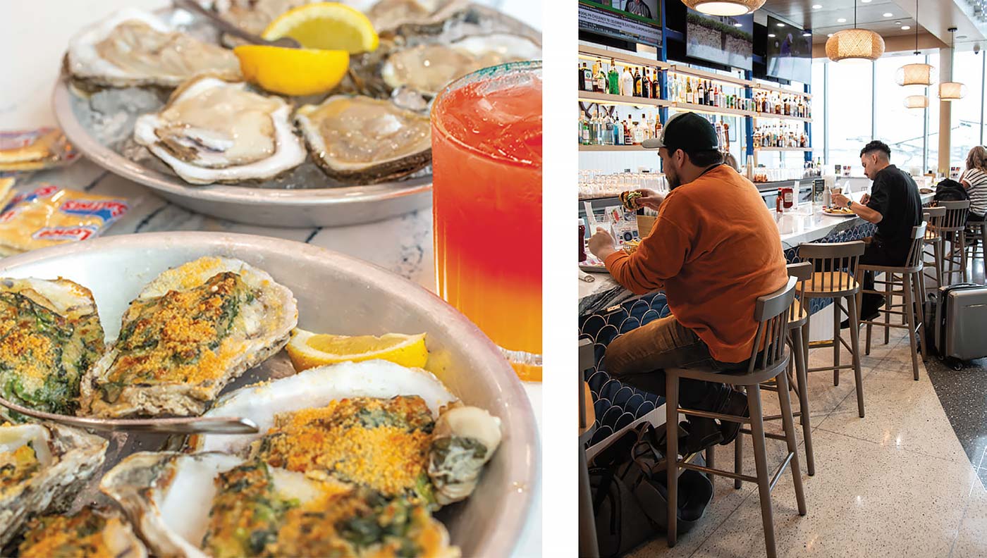 If you’re studying Patricks and AMOB’s airport menus and you notice there’s an overlap, I did too. Sully was happy to explain. Turns out he and AMOB owners John and Amanda Horne go back 30 years, and they agreed to let travelers order freely from either menu—no turf wars, just teamwork. Because at the end of the day, it’s about making things easy (and delicious) for the guest. The AMOB and Patricks locations are run by SSP America—billed as “the food travel experts”—and it’s clear they take that title seriously. Both restaurants share one high-efficiency kitchen, and based on the oysters and burgers we sampled, it’s more than up to the task. Yes, you read that right: fresh Gulf Coast oysters at the airport—and they were genuinely delicious. Not “good for airport food,” just good, full stop.