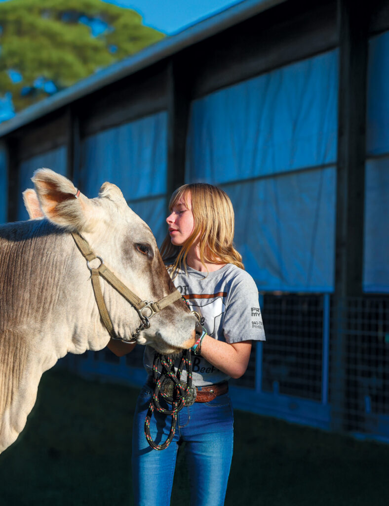 Whether they’re raising an animal for competitive showing, breeding, or market sales, every student and their families commit to an intensive endeavor. Traugott points to Munchkin, a steer that currently resides at the Farm, to illustrate how each cattle husbandry project demands significant technical expertise and long-range planning skills.