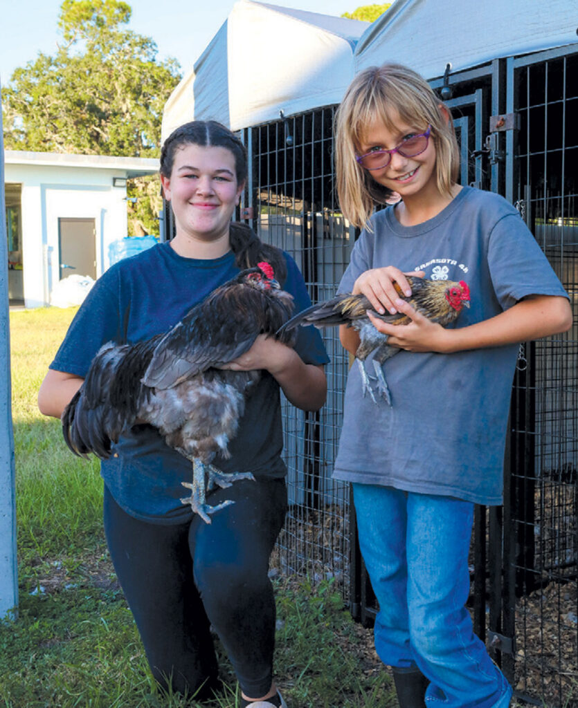 4-H members, Addison Porter and Ava O’Mahoney with Chickens King Henry and Napolean