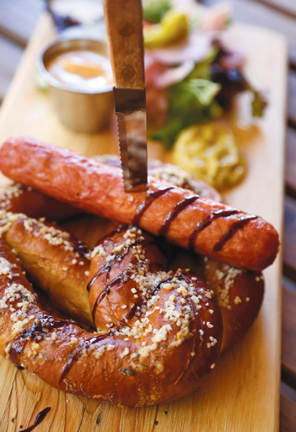 Despite the regular menu changes, there are some favorites you’ll likely find when you visit, including a Bavarian pretzel served with sausage and house mustard; and the beef tenderloin sandwich. The seafood quesadilla with crab and lobster meat is also a regular hit. The specials written on a blackboard one recent day included cream of mushroom soup, poké taco, poké salad, baked brie, mahi spread melt, salted caramel brownie, and a caprese board.